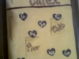 korpus - piškot ze špaldové mouky krém - creme fraiche, bílé a mléčné čokolády voda - agar ochucený citronovou šťávou...
