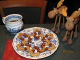 Těsto rozválíme na silnější placku a vykrajujeme kolečka nebo jen děláme na plech (vymazaný tukem) menší hrudky. Po upečení můžeme pocákat čokoládou....