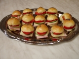 Do pekárny dáme mléko, povolené máslo a sádlo, žloutky, špetku soli a citronovou šťávu, nasypeme mouku a cukr a navrch rozdrobíme droždí. Necháme vymíchat a vykynout, poté rozdělíme na 30 dílů, z každého vytvarujeme placičku, kterou potřeme rozpuštěný...