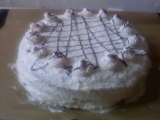 forma průměr 24 cm korpus:ušlehat bílky, přidat 120 g cukru. V druhé míse šleháme žloutky s dalšími 120 g cukru. Postupně přiléváme olej, vodu, a mouku smníchanou s práškem do pečiva. Nakonec vmícháme sníh. Třetinu těsta dáme do nádoby, kde jsme šleha...