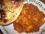 Podle návodu propláchneme sáčky s čočkou a necháme namočené cca 35 minut, do vody ale přidáme veškeré koření. Po této době uvedeme do varu a pomalým varem vaříme asi 35 min.do měkka. Na pánvi rozpálíme olej, zpěníme cibuli a a opečeme na kolečka na...