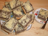 Z ingrediencí na těsto vše smícháme, nalijeme na plech a dáme péct. Máslo utřeme se žloutkem, přidáme cukr a rum. Krém natřeme na vychladlou placku a posypeme strouhanými očechy....