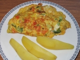 Zeleninu si uvaříme v mírně osolené vodě. Klobásku uvaříme také. Zeleninu a klobásku si nakrájíme na menší kousky - malé kostičky. Suroviny na těsto smícháme - vajíčko pouze žloutek, z bílku ušlehat sníh a na závěr lehce vmíchat. Koření dávám...