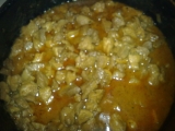 Maso nakrájíme na kostičky osolíme, opečeme na oleji. Pak dáme zapéct do trouby. Nakonec přidáme kečup,pivo, pepř a česnek. Ke konci dušení můžeme přidat také hrášek, červenou kapii a žampiony. Podáváme s rýží nebo hranolky....